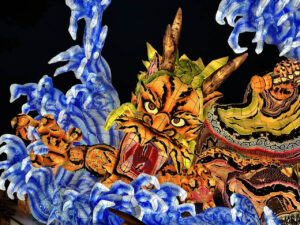 ねぶたは迫力のある全体の姿の他に着物の柄など細かい部分にもこだわりがあって